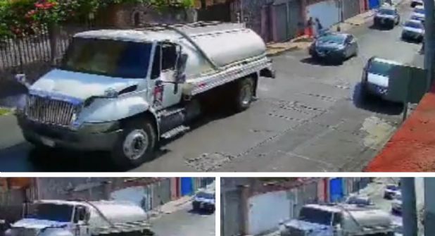 En el video, de unos segundos de duración, se observa el momento en que la pipa sube aparentemente sin problemas la calle con una notoria inclinación, pero un momento después se le ve de reversa mientras su conductor intenta controlarla, sin éxito.