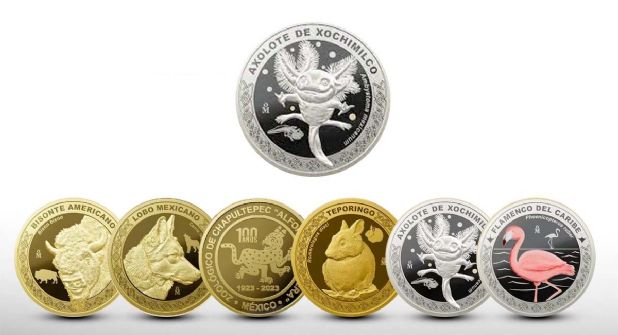 Cada una de las seis monedas tendrá en una de sus caras a un animal plasmado, estos animales representan a las especies que han habitado el zoológico, de las que destaca sin duda es el ajolote.
