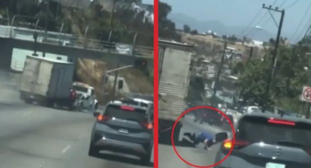Un video en redes sociales se volvió viral al mostrar como un camionero salta de su unidad en pleno movimiento, tras haberse quedado sin frenos la grúa que lo transportaba, y sin importar los daños a los demás vehículos a su alrededor.