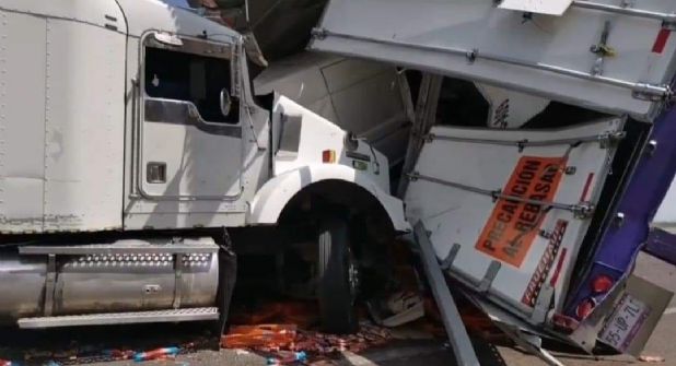 De pronto, una vagoneta llegó hasta el lugar y se estacionó detrás del accidente para robar galletas, pero otro tráiler lo impactó con el primero, atropellando y atrapando a dos personas entre los vehículos.