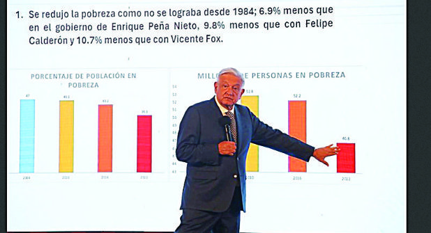 Aun cuando aseguró que la pobreza extrema se había reducido entre el 2021 y 2022 en 0.1 por ciento, al pasar de 7.2 a 7.1 por ciento, reconoció el incremento marginal en la pobreza extrema entre el 2018 y 2022 al pasar de 7.0 a 7.1 por ciento, lo que atribuyó a la pandemia.