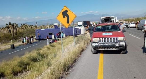 Esta mañana se registró un accidente con un camión de pasajero, el cual volcó sobre la carretera 54 de Zacatecas y dejó al menos a 8 personas lesionadas por el siniestro.