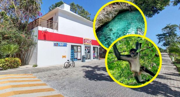 El Oxxo que tiene un cenote en su instalación, está ubicado en la Riviera Maya, Quintana Roo, pero además quienes lo han visitado aseguran que a las afueras del Oxxo se avistan algunos primates, estos se postran en los árboles curiosos al ver que entra y salen personas de la tienda.