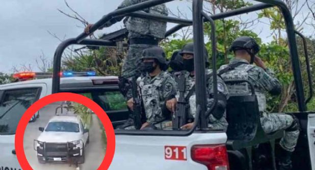 Aunado a eso, se observa como la unidad móvil de las fuerzas armadas, no detiene su marcha, a pesar de que al frente de él, van dos perros, casi huyendo de las llantas del vehículo, y al costado de este, otro perro corre también.