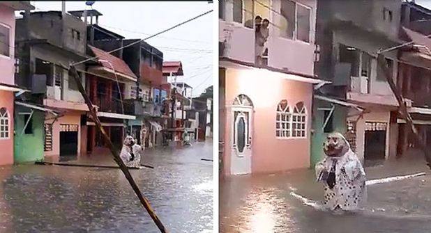 Un Dr. Simi fue abandonado a su suerte en medio de una inundación en Tabasco; la pobre botarga tuvo que arreglárselas completamente sola para poder sobrevevivir en las torrenciales lluvias del llamado "monzón mexicano".