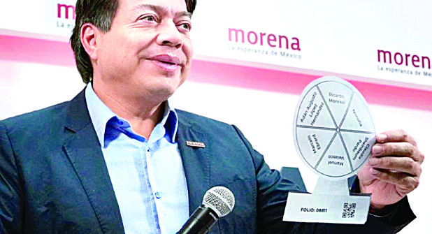 El presidente nacional de Morena, Mario Delgado, junto con el presidente del Consejo Nacional del partido, Alfonso Durazo, dieron a conocer la boleta que es usada desde ayer para las encuestas con las que se definirán el proceso interno, así como las medidas de seguridad para su resguardo en una bóveda rentada por el partido guinda.