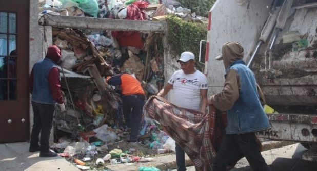 Cuadrillas de camiones recogedores de basura realizaron la limpieza en la casa ubicada en la colonia Ciudad Azteca Tercera Sección, donde ya se había generado fauna nociva y malos olores.