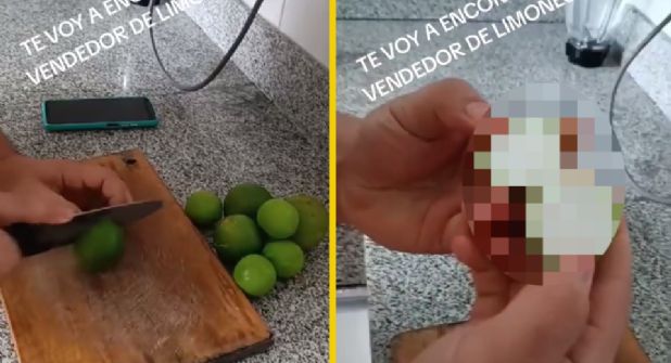 A través de redes sociales se viralizó un video en el que se muestra como un hombre, al comprar un kilo de limones, descubrió una desagradable sorpresa al interior de la fruta.