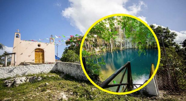 Este cenote es buscado y encontrado tomando como referencia la iglesia que está sobre él prácticamente, este cuerpo de agua tiene un diámetro de 40 metros de ancho y de hondo 45 metros.