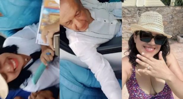 El presidente Andrés Manuel López Obrador, atestiguó el momento en el que un hombre le pide matrimonio a su novia, durante la reciente gira que hizo a la Riviera Maya.
