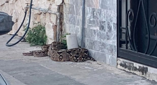 Captan enorme serpiente recorriendo las calles de Centro Histórico de Mérida, Yucatán, una mujer fue quien la encontró, estaba en una banqueta y pegada a una vivienda.