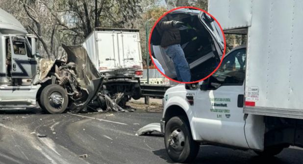 En las fotografías compartidas en redes sociales se puede observar como el tráiler dejó completamente compactada la cabina de la camioneta, en donde se encueraba una persona sin vida.