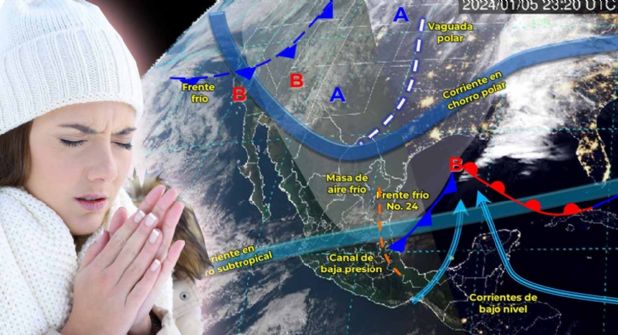Se espera la llegada del Frente Frío 25 desde el domingo 7 y hasta la madrugada del martes 9 de enero que, en combinación con una baja presión de núcleo frío, provocarán la cuarta tormenta invernal.