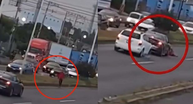 Un hombre que presuntamente estaba intoxicado esperaba autos en una avenida para simular que lo atropellaban, hasta que calculó que un auto de color rojo podía ser el indicado para su actuación, pero para su sorpresa el auto freno a tiempo, pero el auto rojo fue impactado por otro por atrás y el hombre fue atropellado de verdad.