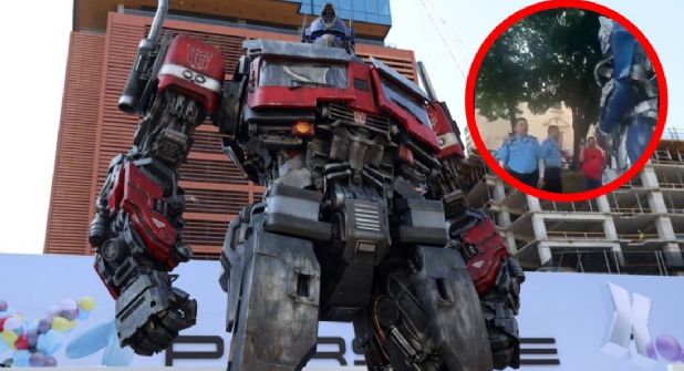 El video de casi 6 minutos de duración muestra a la persona disfrazada de Optimus Prime discutiendo con el agente de la policía porque no quiere que siga trabajando en la zona con su disfraz.