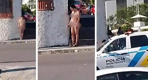 La sorpresiva presencia de una mujer completamente desnuda causó curiosidad ayer en la avenida Alejandro de Rodas, en el sector Cumbres, en Monterrey, Nuevo León.