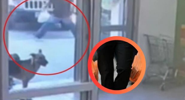 En el video, de menos de un minuto, se aprecia que, al salir por la puerta automática del supermercado, el hombre se topa con dos perros que observan el interior del establecimiento.