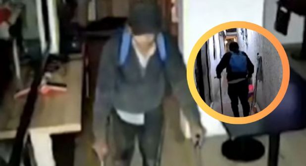 El responsable, quien sorprendió por moverse con muletas, fue captado en video mientras escalaba una pared para ingresar al establecimiento.