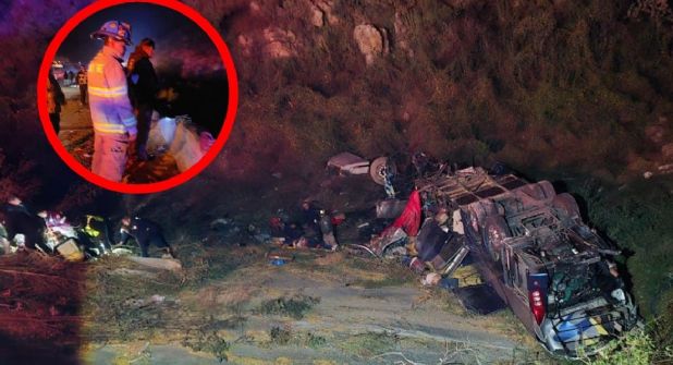 A primeras horas de este sábado 26 de octubre se presentó un llamado de ayuda para atender un autobús de de pasajeros que luego de chocar con un tráiler salió de la carretera hacia un barranco de mas de 10 metros volcándose al caer.