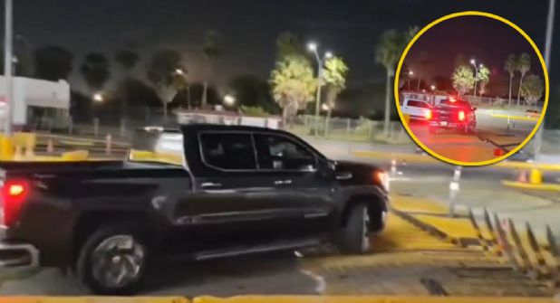 A través de redes sociales se viralizó el momento en el que un conductor se niega a detenerse en una revisión de la Guardia Nacional instalado en el puente internacional de Matamoros, Tamaulipas, dejando numerosos destrozos.