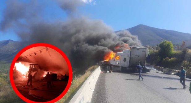 Un conductor de tráiler murió en un aparatoso choque con incendio incluido, en el kilómetro 229 de la carretera 57, en el tramo conocido como Los Chorros, en Arteaga, Coahuila.