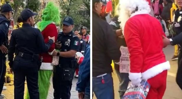 El Grinch es un persona antagónico de la Navidad, fue captado tanto al ser detenido como cuando los policías lo retiraron del lugar.