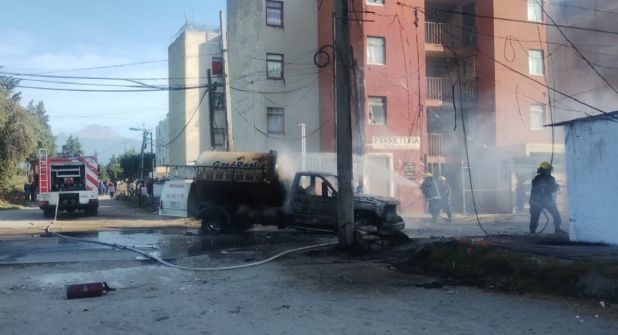 Una gran movilización de servicios de emergencia se registró en la unidad habitacional El Llanito, municipio de Chiautempan, en Tlaxcala, tras la explosión e incendio de una unidad transportadora de gas L.P.