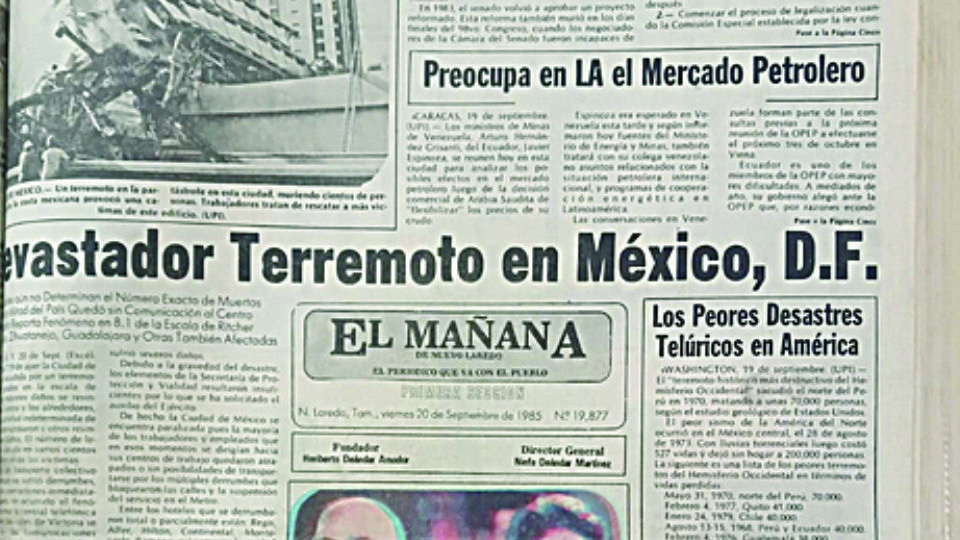 En los 100 años de recopilar noticias, sin duda una de las más trágicas y tristes que ha publicado El Mañana es la del terremoto del 19 de septiembre de 1985 de la Ciudad de México.