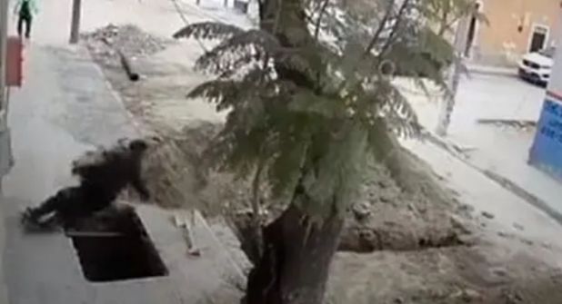 A través de redes sociales se viralizó el momento en el que un abuelito cayó dentro de una coladera abierta, fracturándose la pierna al tropezarse con el peligroso obstáculo.