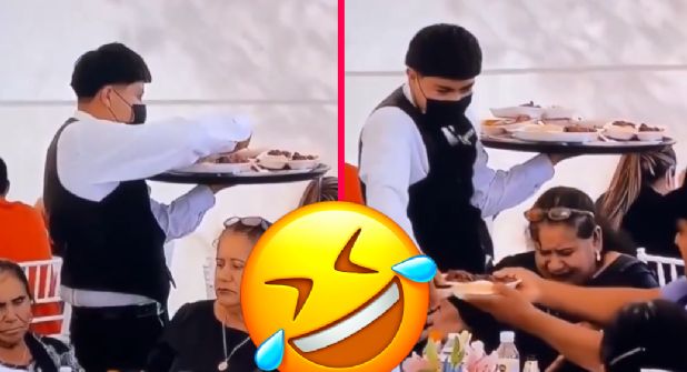 Fue en Twitter/X donde los usuarios vaciaron sus risas ante el video, donde se observa a un joven trabajando como mesero, repartiendo la comida en una fiesta realizada dentro de un salón de eventos.