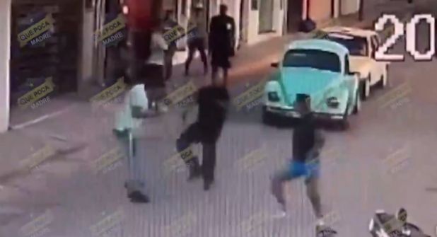 En un vídeo que se difundió en plataformas de redes sociales, se puede ver cómo un individuo baja de una motocicleta y empieza a atacar al miembro de la Guardia Nacional que estaba al volante de un vehículo azul.