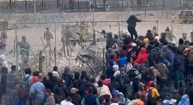 Esta tarde, un grupo de migrantes trataron de tumbar la cerca de púas que divide a Ciudad Juárez, Chihuahua, de El Paso, Texas, creando caos y tensión.