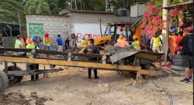 Dos hombres, empleados de una empresa particular, que se hallaban ampliando la red de drenaje sanitario quedaron sepultados entre 8 y 10 metros bajo la tierra, en Tehuantepec, Oaxaca.