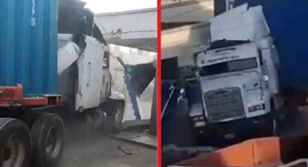 A través de redes sociales se viralizó el momento en el que un trailero se volvió loco al trata de dar vuelta en U sobre una pequeña calle, llevándose un negocio de tortillas y poniendo en riesgo a las personas del sitio.