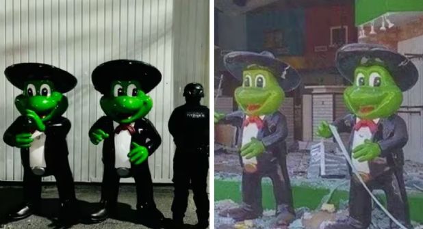 Las ranas, hechas de fibra de vidrio, fueron robadas del exterior del restaurante, incluso trascendieron imágenes el año pasado de un vehículo que las llevaba.