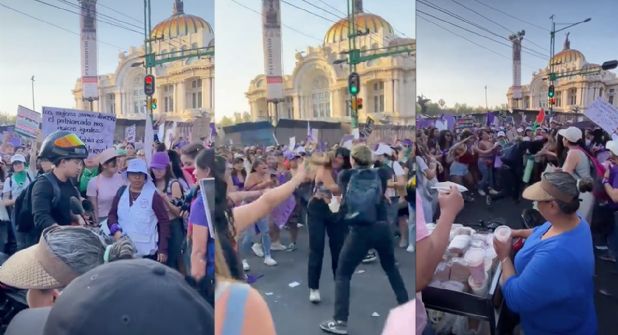 En la manifestación del 8M de la CDMX un motociclista se agarró a golpes contra varias mujeres, en un primer video se ve al hombre agrediendo físicamente a dos mujeres, posteriormente varias se le van encima y el hombre comienza lanzar de puñetazos.