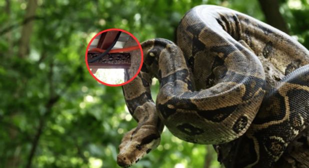 En una de las vigas del techo, había una enorme boa acomodada descansando en la esquena de la estructura metálica.
