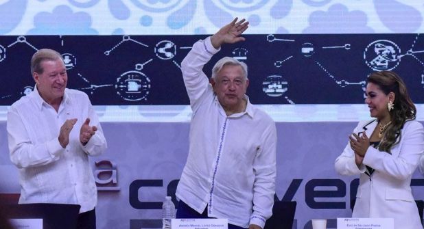 “Les agradezco mucho, yo ya no estaré en la próxima (Convención Bancaria), me voy a Palenque en cinco meses, me despido de ustedes por anticipado. Me han tratado muy bien, con respeto y considero que han sido correspondidos, les he tratado con respeto y he cumplido los compromisos que hice al inicio de mi gobierno”, dijo López Obrador, un comentario que provocó los aplausos del público que asistió al evento.