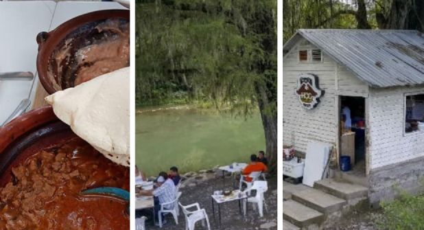 Este encantador sitio se encuentra en el municipio de Allende, Nuevo León, a unos 59 kilómetros de Monterrey, se trata de una cabaña, donde está la cocina, además de mesas y sillas de plástico bajo la sombra de grandes árboles.