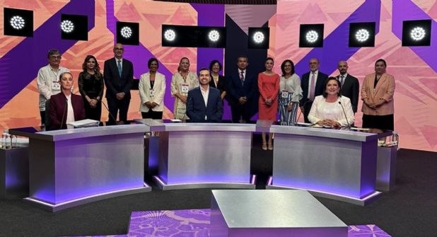 El debate presidencial de inició a las 8:00 de la noche del centro del país (9:00 horas de la frontera) con las candidatas y candidato en el auditorio del Instituto Nacional Electoral (INE).
