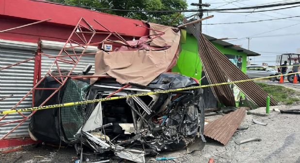 Al ladearse el tráiler hacia la derecha, chocó contra una camioneta Sienna, color arena, en la cual viajaba Maria Luisa Tamez, candidata a Diputada Local por el Distrito 26 del Partido Liberal, con su pareja. El pesado mueble cayó encima de la camioneta, que terminó volcada en los negocios The Chochos Drinks y La Peñita tras impactarse también con un Renault Negro.
