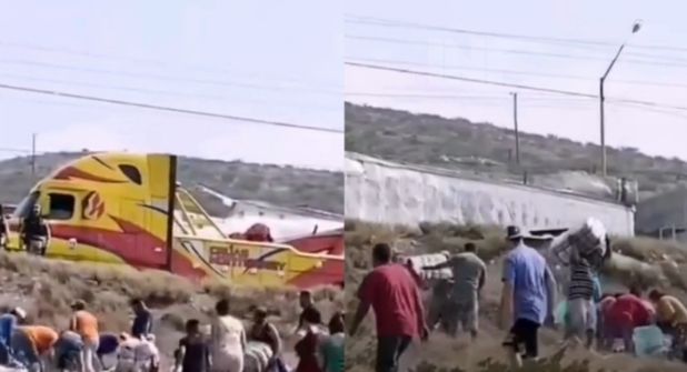 Los hechos se presentaron en la Carretera Federal 57, a la altura de Mina, Nuevo León, donde un camión de carga llevaba una buena cantidad de pacas de ropa. Testigos señalan que la unidad viajaba a exceso de velocidad, así que en un punto de la carretera volcó, lo que provocó que las pacas se salieran.