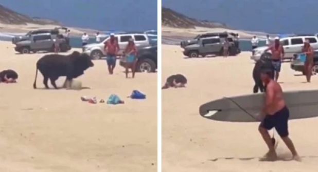 Un toro sorprendió en una playa a turistas y terminó embistiendo a una mujer, esto en Los Cabos, Baja California.