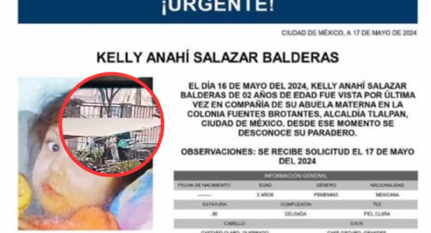 Kelly Anahí Salazar Balderas, una pequeña de tan solo dos años de edad, fue raptada en presencia de su abuela, hecho que quedó grabado por una cámara de seguridad el pasado jueves 16 de mayo.