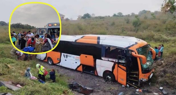 Se trata de un autobús de turismo que salió de la Ciudad de México con destino a las playas Villa Rica en Actopan, Veracruz y de acuerdo con las autoridades, el motivo por lo que la unidad volcó es que se le reventó un neumático al autobús.