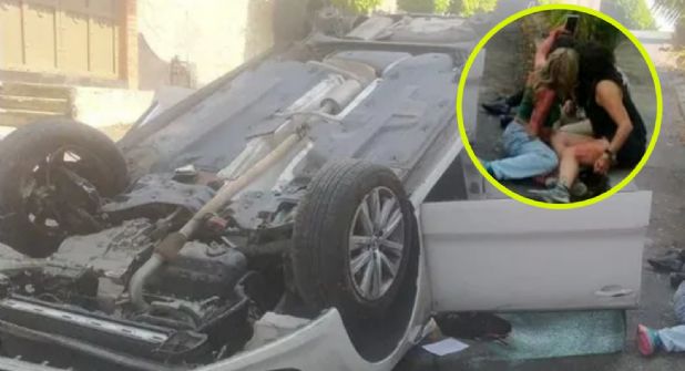 Afortunadamente no hubo pérdidas humanas qué lamentar, pero ahora las mujeres, que estaban ebrias, tendrán un recuerdo más en su vida, pues jamás olvidarán cuando volcaron, pero no fue todo, sino que lesionadas ya fuera del auto tuvieron espacio para tomarse una selfie.
