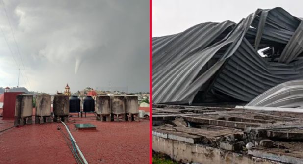 El extraordinario fenómeno meteorológico ocurrió en Tres Caminos, Santa Cruz Atzcapolzaltongo, en Toluca, Estado de México, donde el vórtice de viento derribó infraestructuras, árboles y objetos que se encontraban en la vía pública.