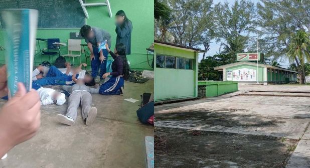 Hay videos de los estudiantes encerrados en el salón, están acostados en el piso y sentados en los rincones del salón y echándose aire con las libretas cuando en Coatzacoalcos las temperaturas han superado los 38 grados centígrados.