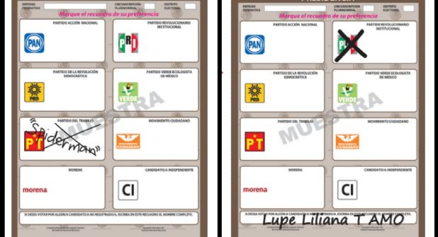 - Marcas fuera del recuadro de una casilla: si ‘le pusiste mucha crema a tus tacos’ y la tache o cualquier marca se salió de los límites de una casilla, el INE lo cuenta como válido, pues la ‘invasión’ no es suficiente para demostrar que el voto nulo.
