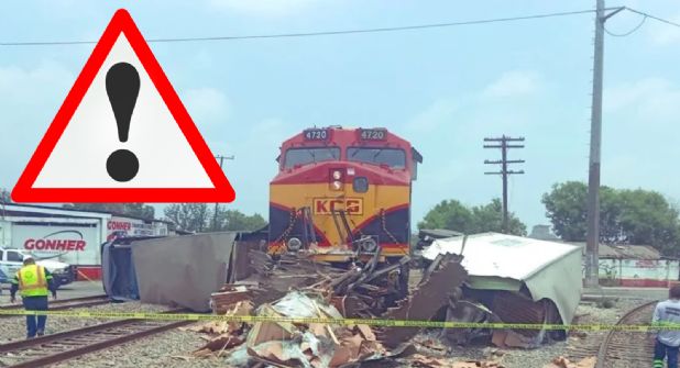 El susto de su vida se llevó el chofer de un tráiler que fue impactado y partido en dos por el tren, esto en la ciudad de Monterrey Nuevo León